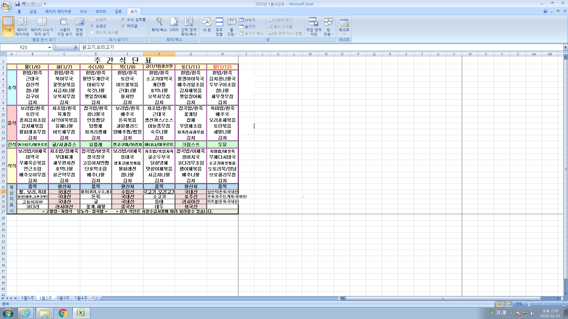 2020³â 1¿ù 2ÁÖ ½Ä´ÜÇ¥