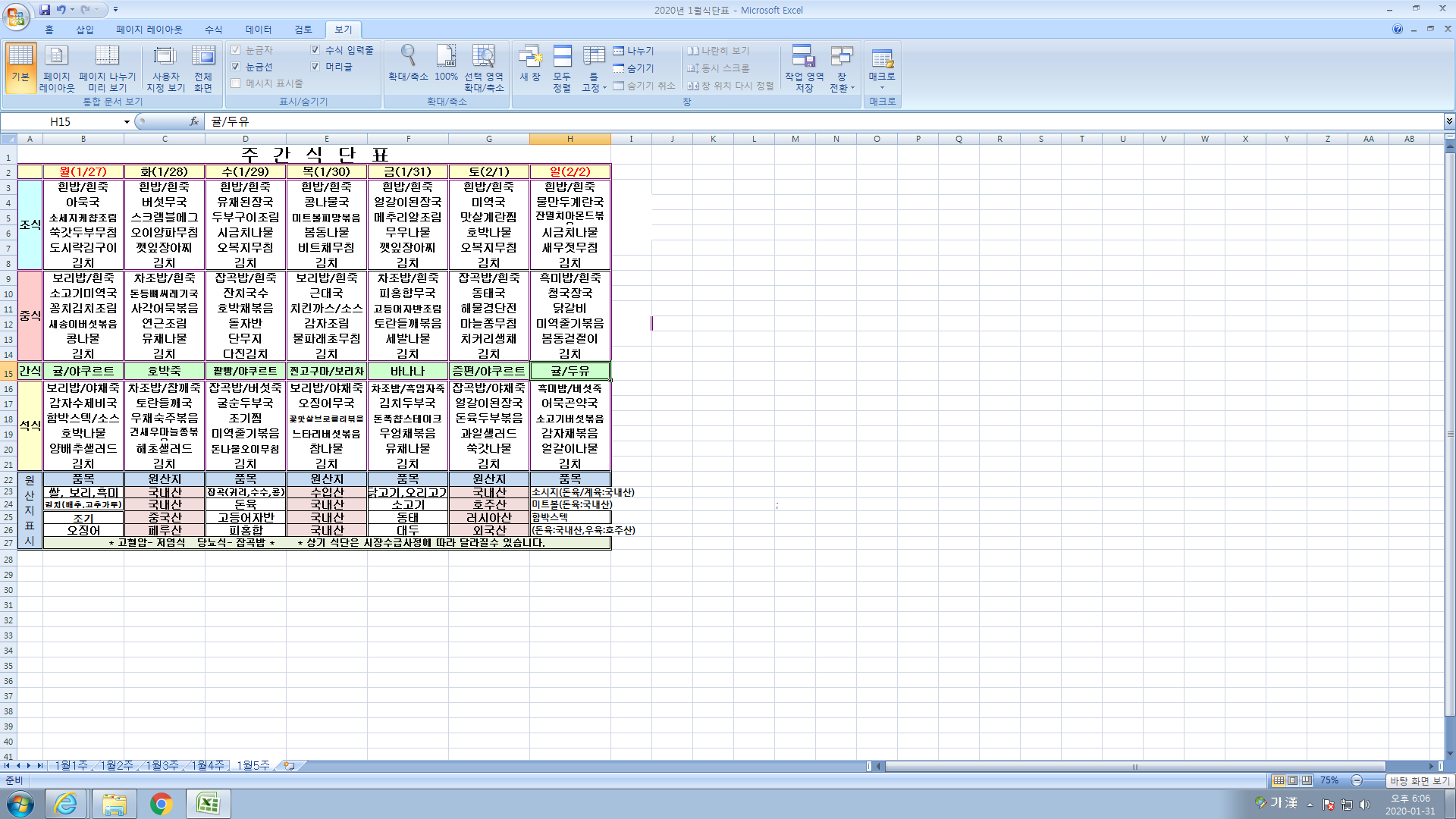 1¿ù 5ÁÖ ½Ä´ÜÇ¥
