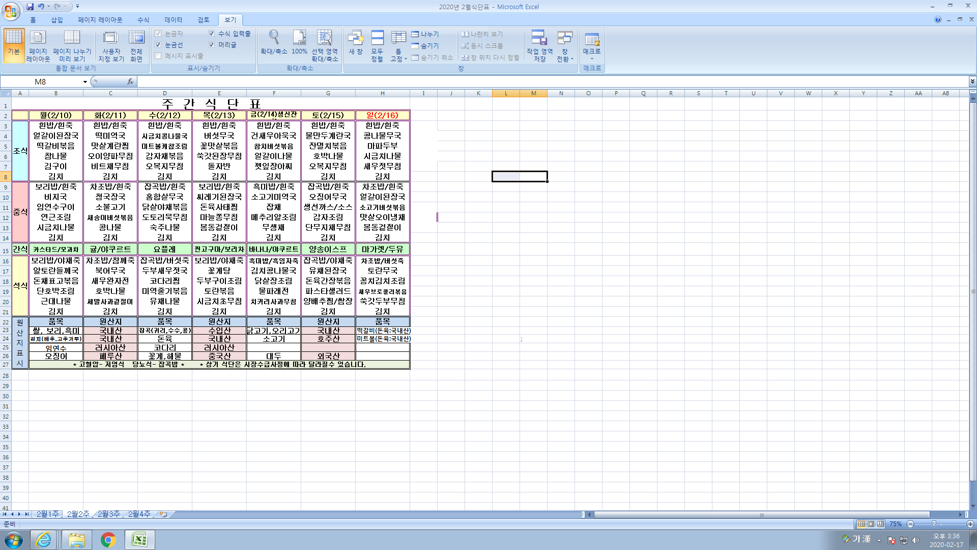 2¿ù 2ÁÖ ½Ä´ÜÇ¥
