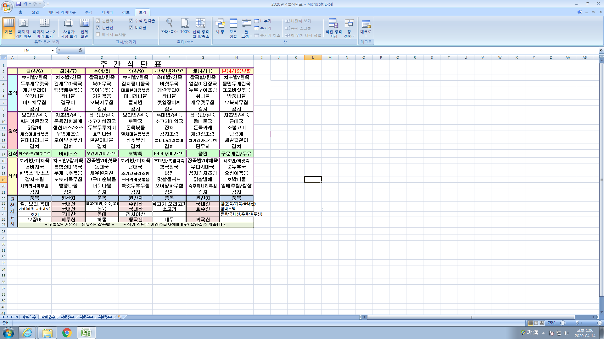 4¿ù 2ÁÖ ½Ä´ÜÇ¥