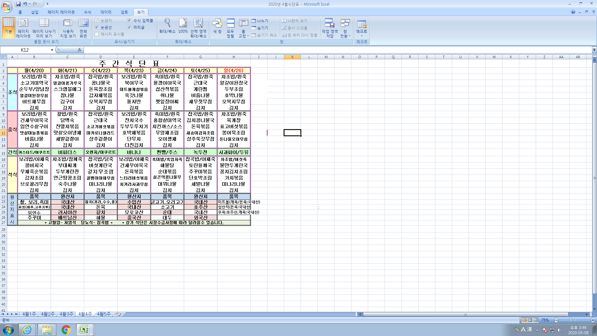 4¿ù 4ÁÖ ½Ä´ÜÇ¥