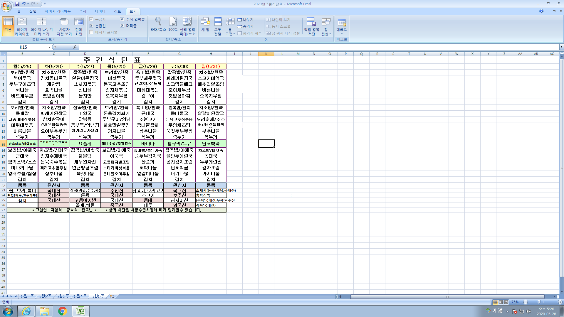 5¿ù 5ÁÖ ½Ä´ÜÇ¥