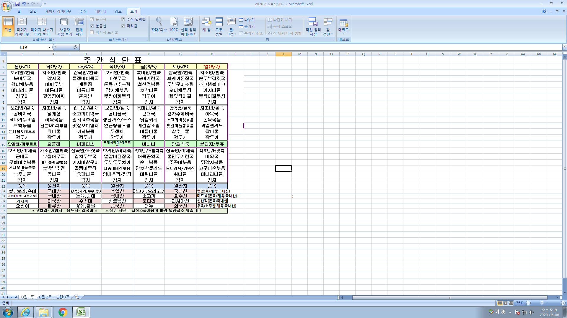 6¿ù 1ÁÖ ½Ä´ÜÇ¥