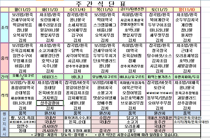 11¿ù 2ÁÖ ½Ä´ÜÇ¥
