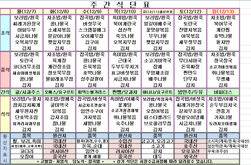 12¿ù 2ÁÖ ½Ä´ÜÇ¥