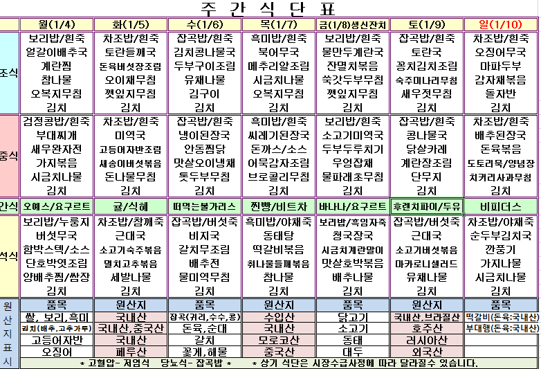 1¿ù 2ÁÖ ½Ä´ÜÇ¥