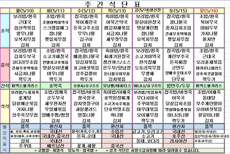 5¿ù 2ÁÖ ½Ä´ÜÇ¥