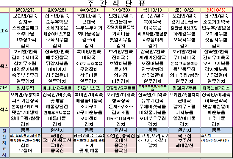 9¿ù 5ÁÖ ½Ä´ÜÇ¥