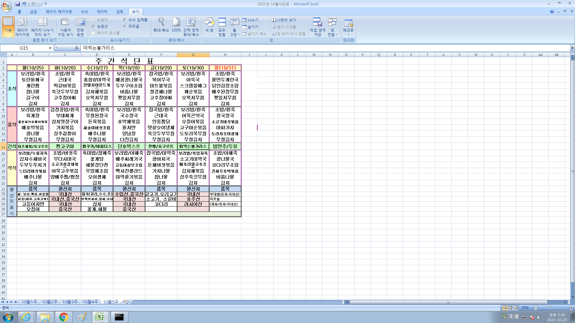 10¿ù 5ÁÖ ½Ä´ÜÇ¥