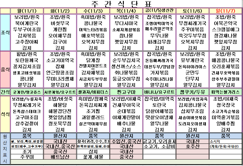 11¿ù 1ÁÖ ½Ä´ÜÇ¥