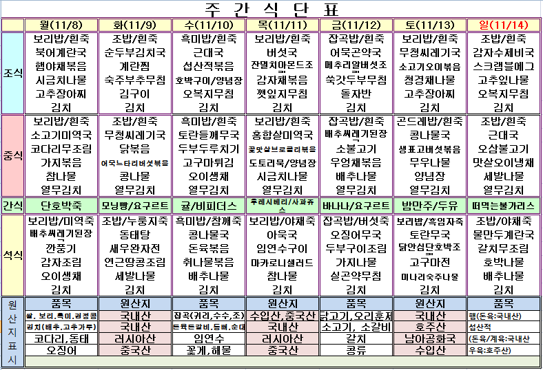 11¿ù 2ÁÖ ½Ä´ÜÇ¥