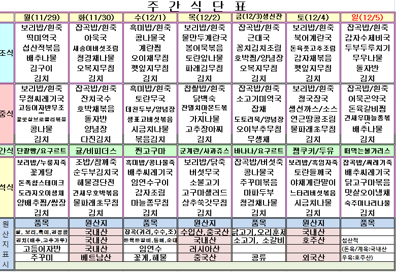 11¿ù 5ÁÖ ½Ä´ÜÇ¥