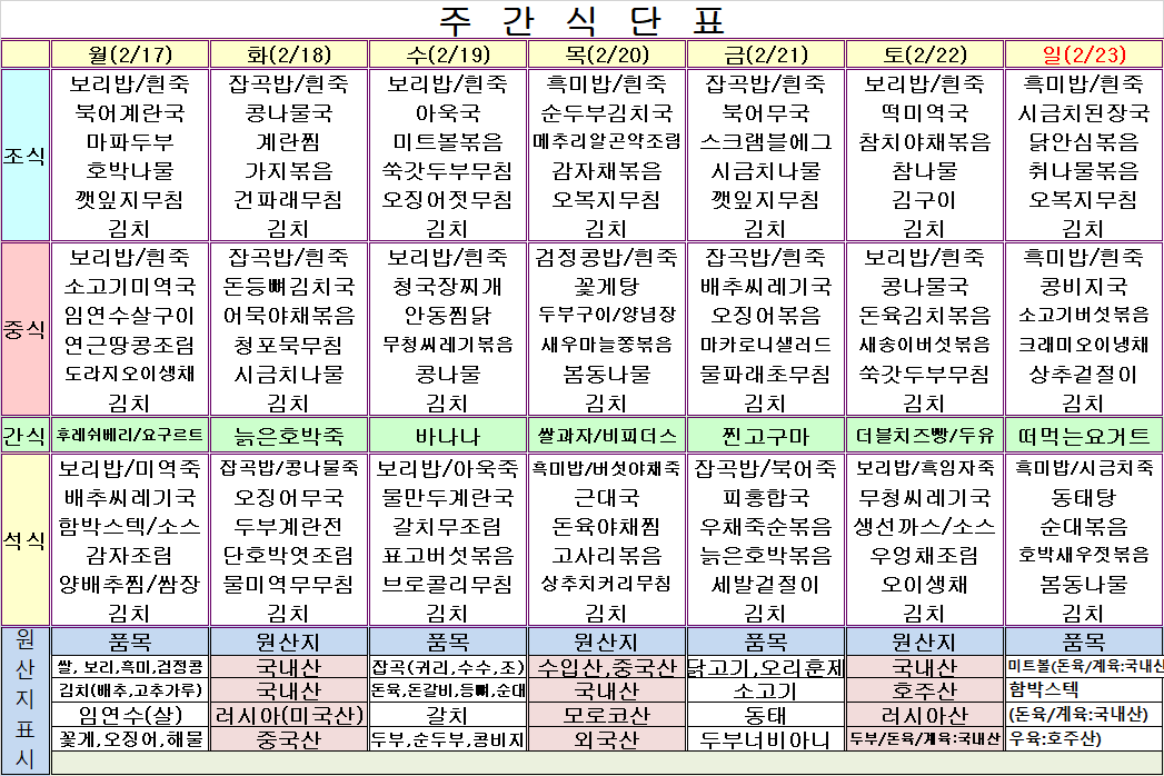 2¿ù3ÁÖ ½Ä´ÜÇ¥