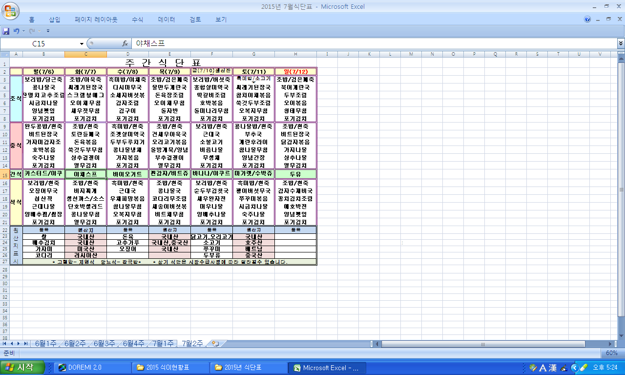 2015³â 7¿ù 2ÁÖ ½Ä´ÜÇ¥