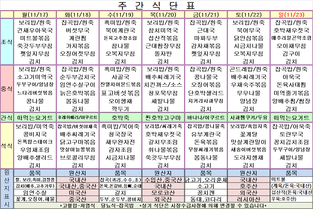 11¿ù 3ÁÖ ½Ä´ÜÇ¥