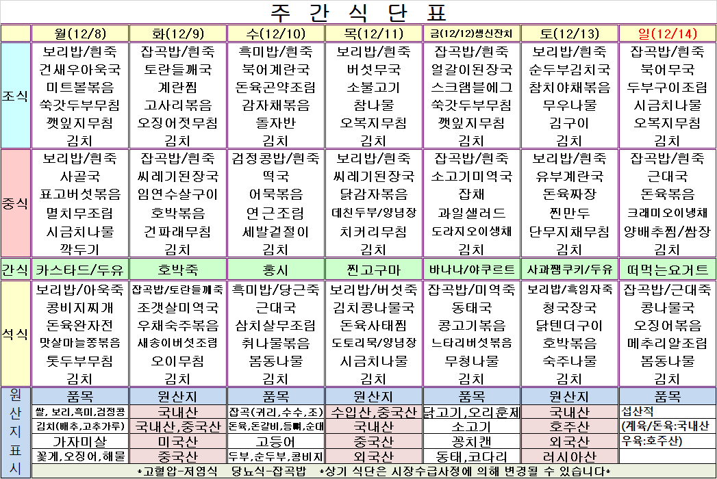 12¿ù 2ÁÖ ½Ä´ÜÇ¥