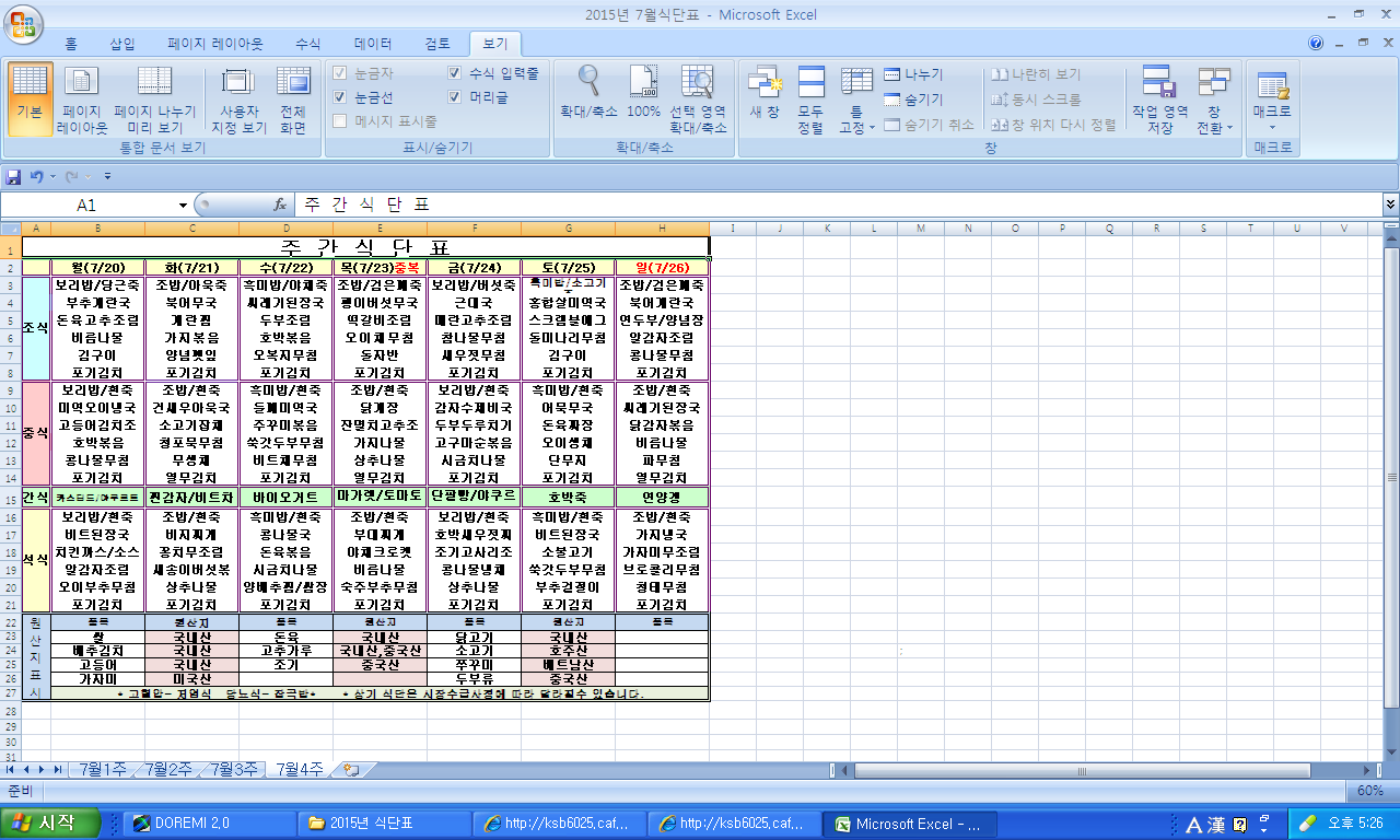 2015³â 7¿ù 4ÁÖ ½Ä´ÜÇ¥