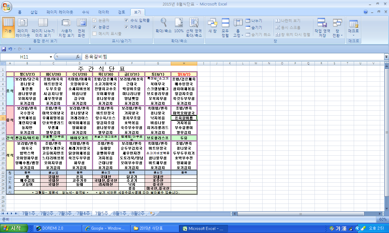 2015³â 7¿ù 5ÁÖ ½Ä´ÜÇ¥