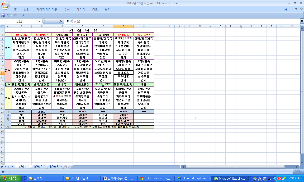 2015³â 10¿ù 1ÁÖ ½Ä´ÜÇ¥