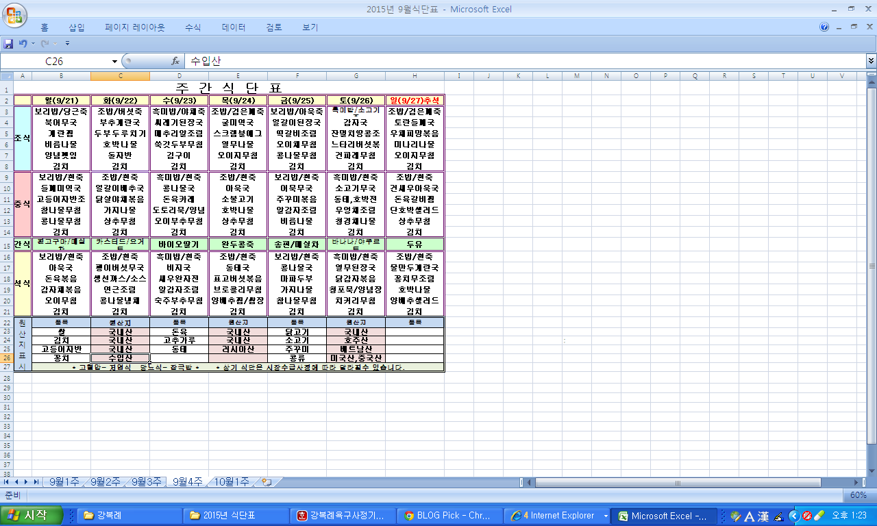 2015³â 9¿ù 4ÁÖ ½Ä´ÜÇ¥