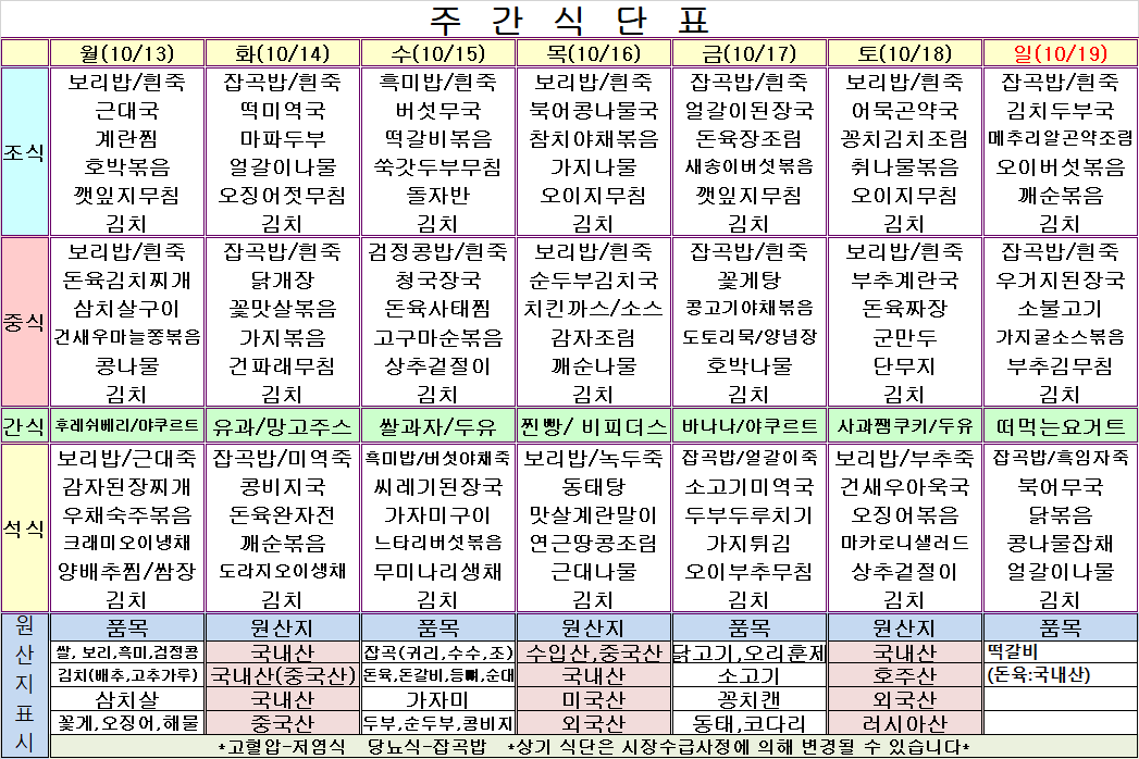 10¿ù 3ÁÖ ½Ä´ÜÇ¥