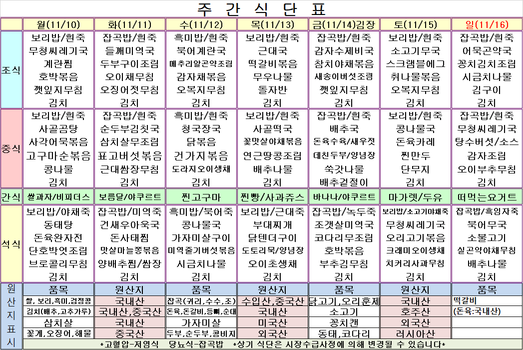 11¿ù 2ÁÖ ½Ä´ÜÇ¥