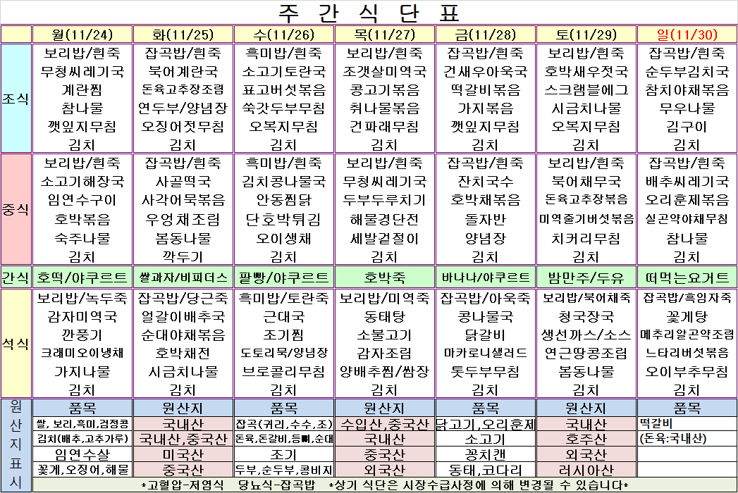 11¿ù 4ÁÖ ½Ä´ÜÇ¥
