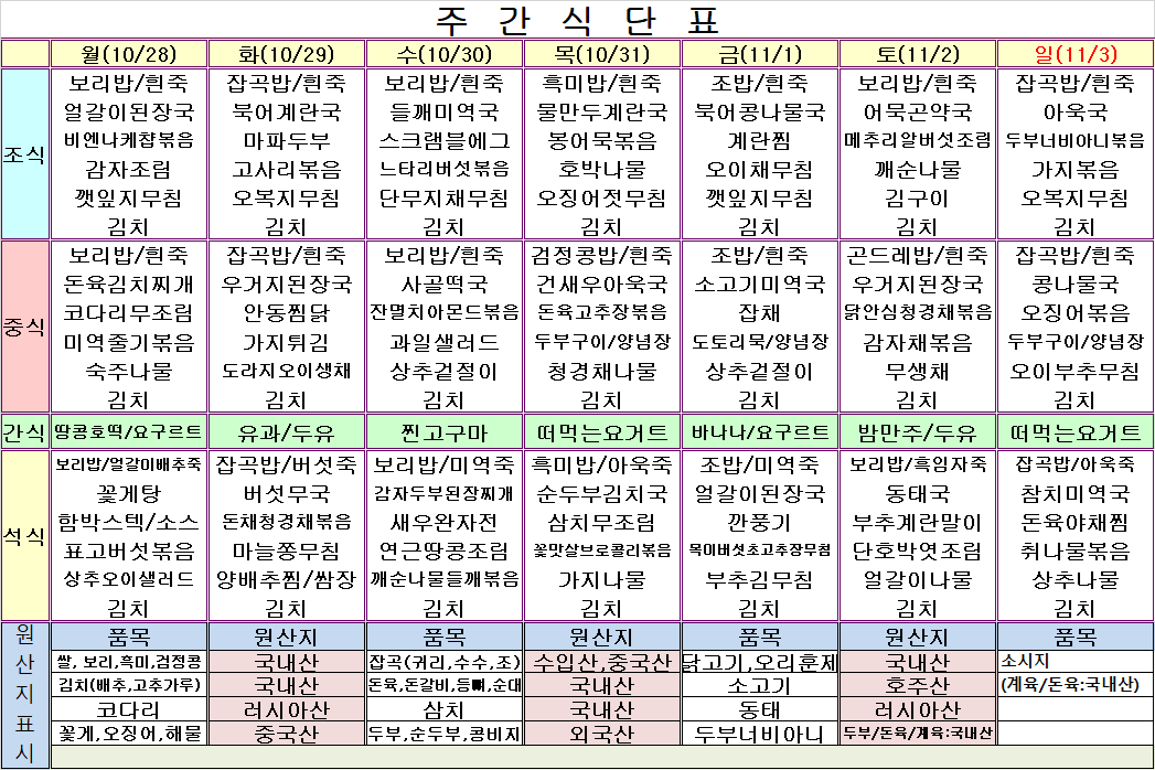 10¿ù 5ÁÖ ½Ä´ÜÇ¥