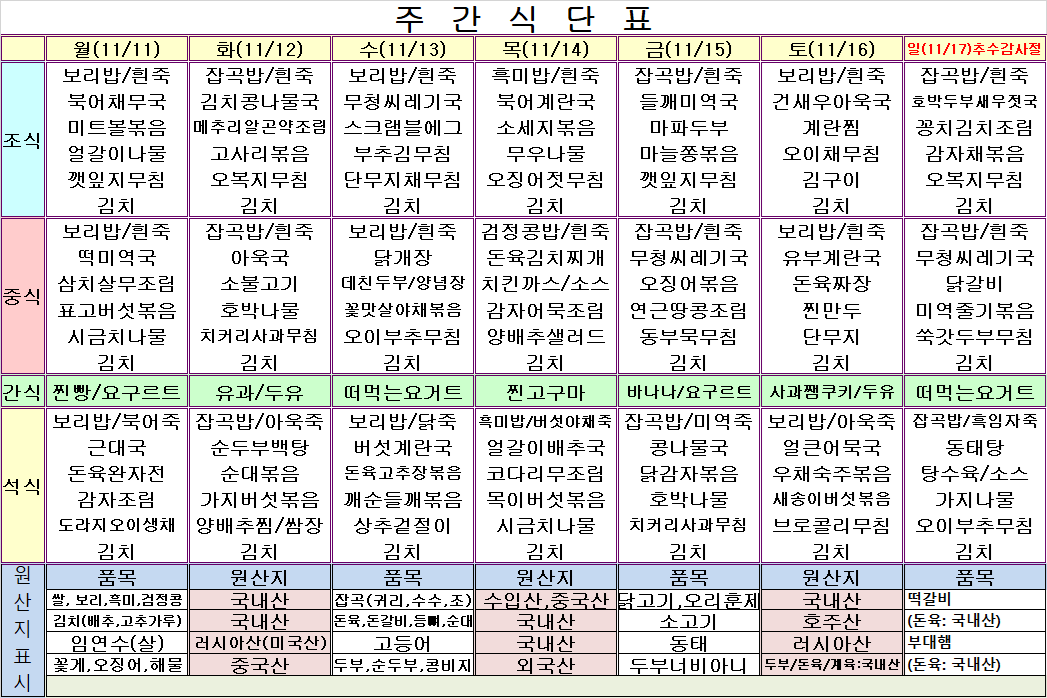 11¿ù 3ÁÖ ½Ä´ÜÇ¥