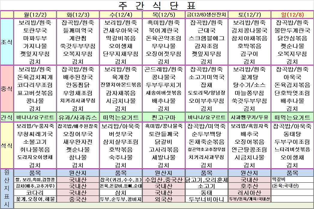 12¿ù 1ÁÖ ½Ä´ÜÇ¥