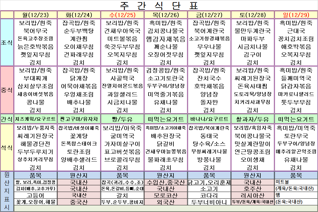 12¿ù 4ÁÖ ½Ä´ÜÇ¥