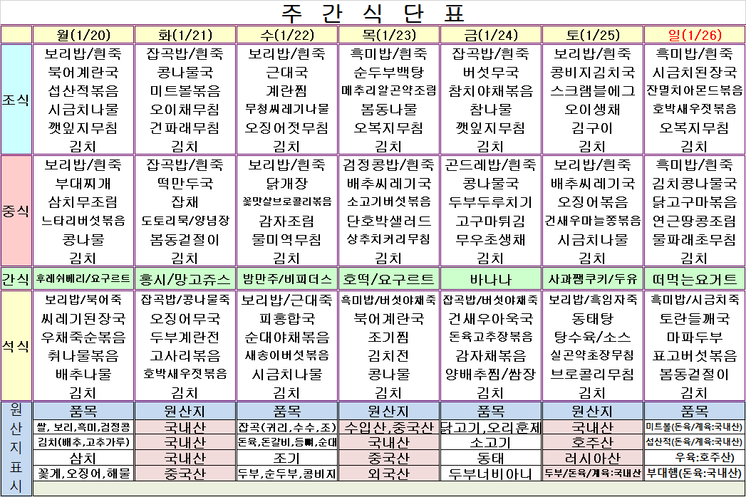 1¿ù 4ÁÖ ½Ä´ÜÇ¥