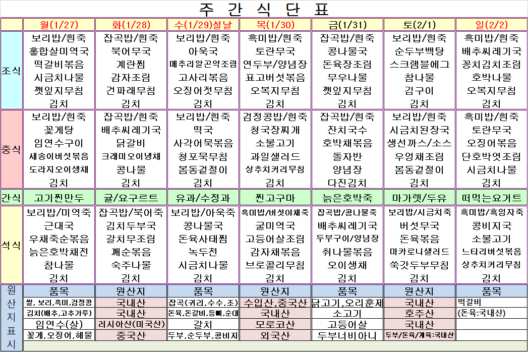 1¿ù 5ÁÖ ½Ä´ÜÇ¥