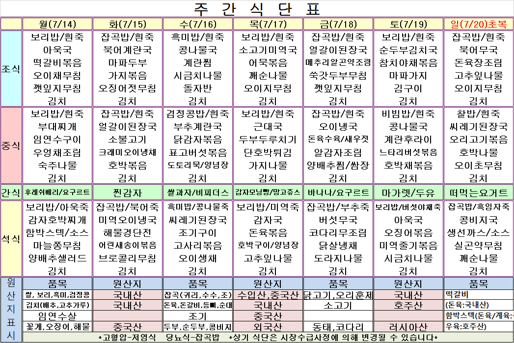 7¿ù 3ÁÖ ½Ä´ÜÇ¥
