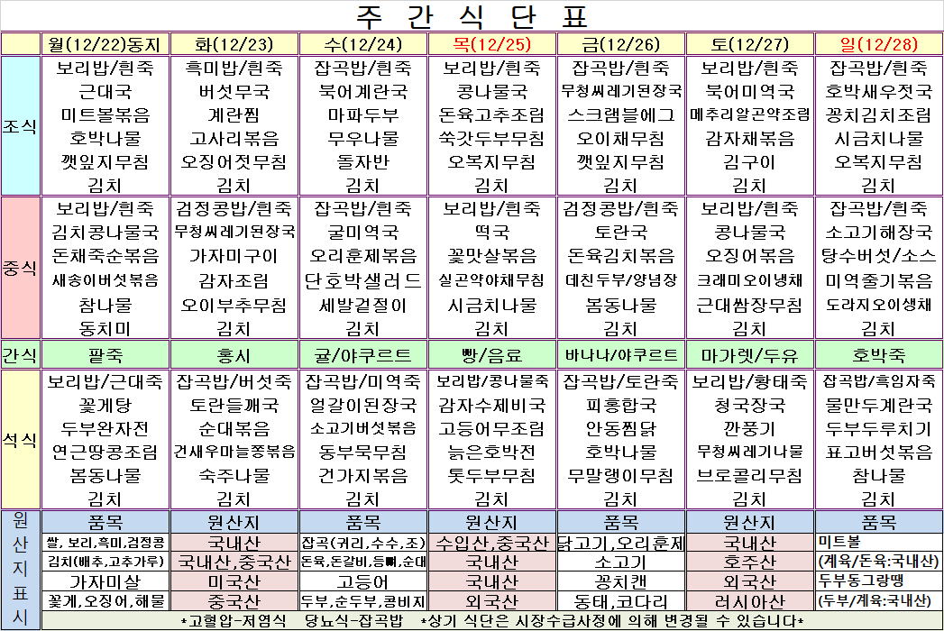 12¿ù 4ÁÖ ½Ä´ÜÇ¥