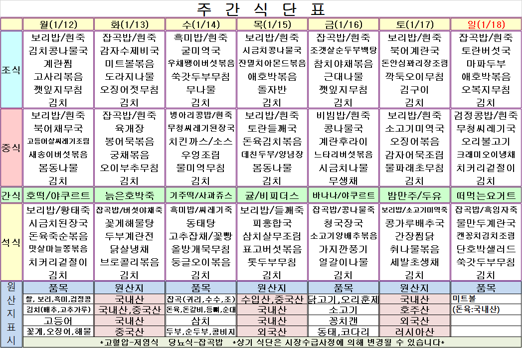 1¿ù 3ÁÖ ½Ä´ÜÇ¥